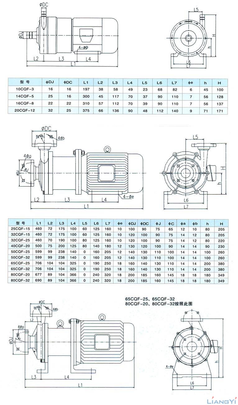 注:表中20CQF-12---65CQF-32都可配防爆电机 |