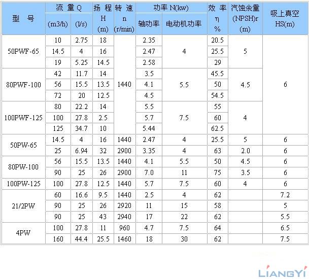 2、PWF型排污泵可输送带有酸性、碱性或其他腐蚀性的污水,广泛应用于化工、石油、轻工、食品、制药、酿造、环保及污水处理等行业。过流部件采用不锈钢材质制造,介质温度不高于100℃。