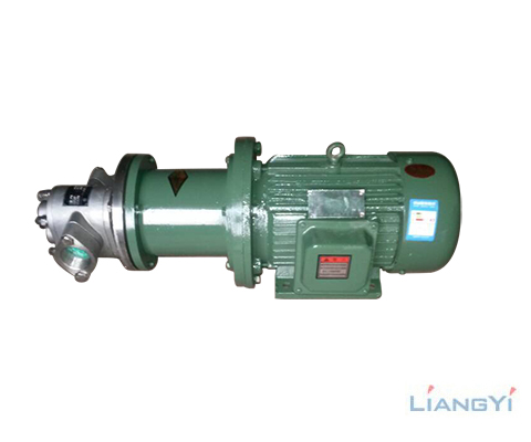 该型泵属于容积式泵,泵体中装有一对回转齿轮,依靠该对齿轮副不断的相互啮合、脱离啮合的过程从而改变泵腔的容积,以达到吸排液体的目的。当齿轮在吸入口侧从啮合到脱离啮合时,泵腔容积变大,泵吸入液体,被吸入的液体充满齿轮的各个齿谷而带到排出侧,当齿轮在排出口侧从脱离啮合到进入啮合时,泵腔容积变小,液体被排出泵外。