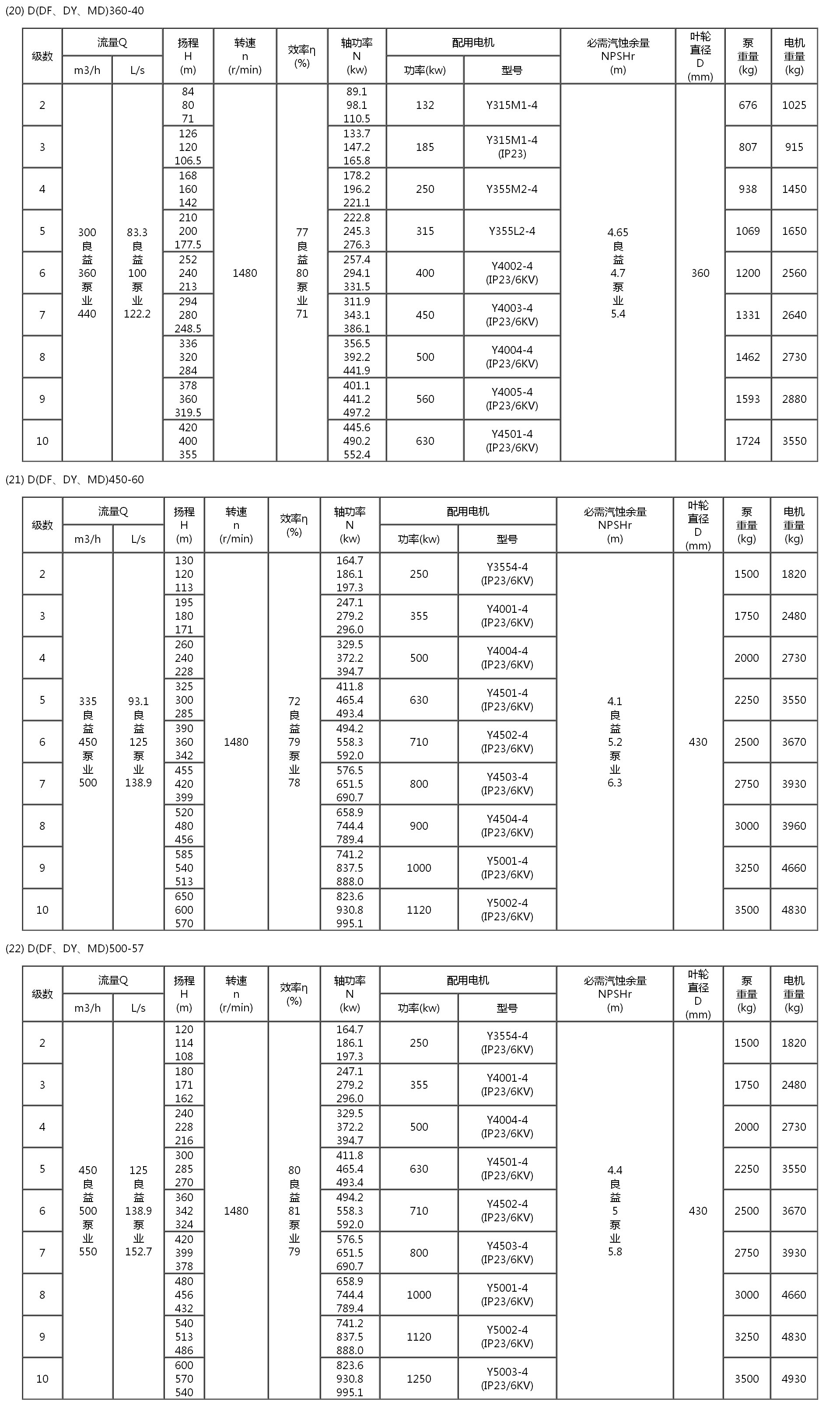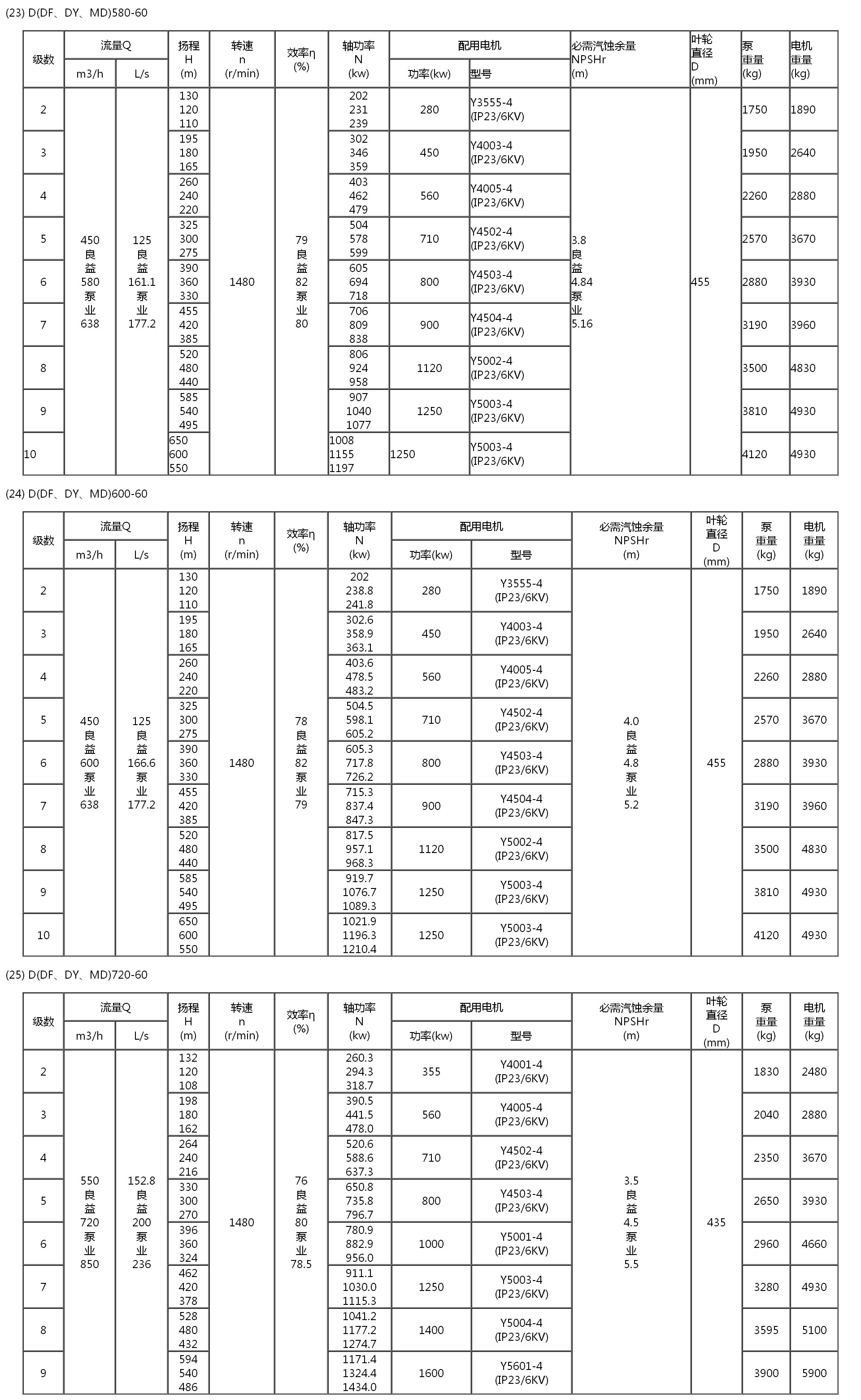 60 ---- 表示设计点单级扬程为60m