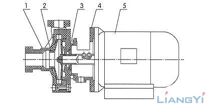 1、泵壳 2、叶轮-轴总成 3、机械密封 4、泵盖 5、电机