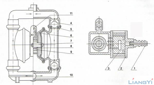 6.在工况恶劣的地方,如建筑工地、工矿企业的废水排放,由于污水的杂质多且成分复杂,管路易于堵塞,这样对于电泵来说就容易形成负载过高的情况,从而导致电机发热损坏,而气动隔膜泵可通过颗粒并且流量自动可调,管路阻塞时可自动停止直至恢复通畅而不损坏泵(该现象常常被称为气动隔膜泵“死机”,消除了引起“死机“”的原因后可恢复正常工作);