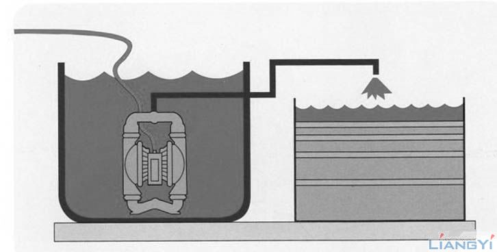 将泵浸在液体中,可代替潜水泵使用,压缩空气另用软管引出。