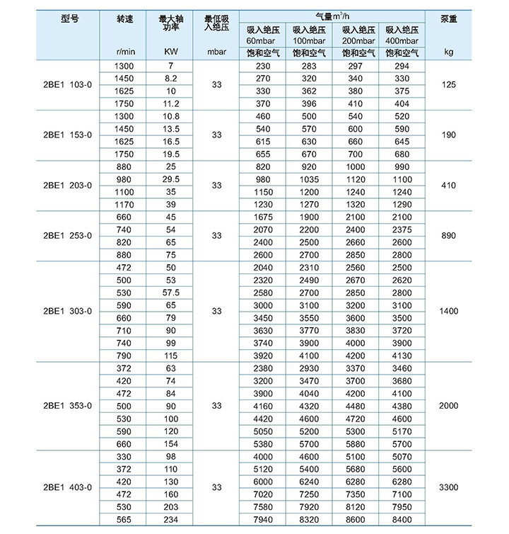碱等其他介质为工作也。其气量范围为4.8-450m3/min,极限真空度为33mbar或160mbar,效率为40-65%。被广泛用于电力、化工、医药、煤炭、造纸、卷烟、制糖等行业。